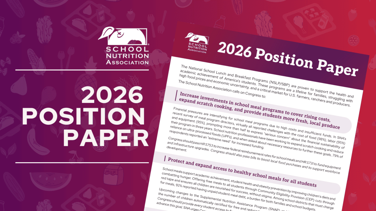 SNA’s 2026 Position Paper calls on Congress to address long-term economic and regulatory challenges for school meal programs.