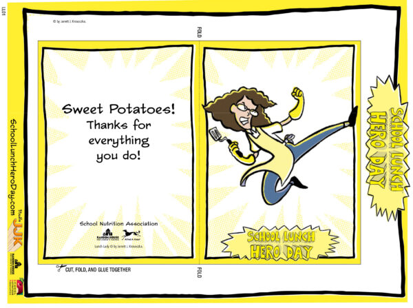 Celebrate School Lunch Hero Day with these fun, printable cards featuring original artwork by Jarrett J. Krosoczka. Students can color, fold, and personalize each card to say thank you to the school nutrition professionals who make a difference every day.