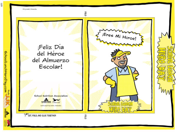 Celebra el Día del Héroe del Almuerzo Escolar con estas tarjetas imprimibles llenas de color y gratitud, ilustradas por Jarrett J. Krosoczka. Los estudiantes pueden colorear, doblar y personalizar cada tarjeta para agradecer a los profesionales de nutrición escolar por su increíble trabajo.