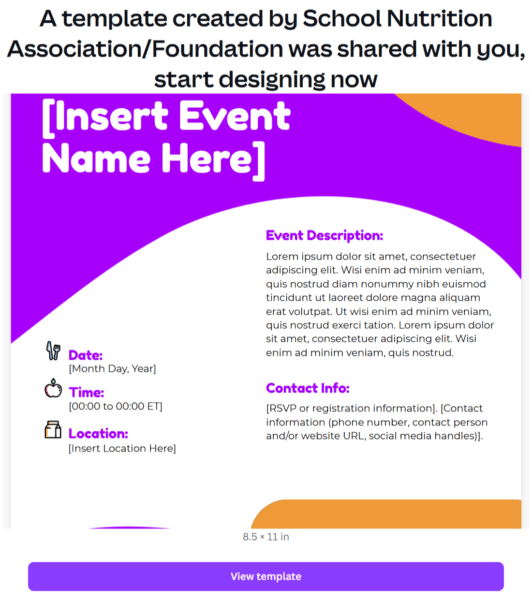 Create eye-catching event promotions with this customizable Canva flyer template. Designed to support the Made With School Lunch campaign, this template makes it easy to highlight school meal events, family nights, or celebrations with professional, on-brand visuals that showcase the importance of nutritious, inclusive school meals.