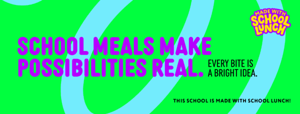 Enhance your school’s social media presence with these branded header images for Facebook and LinkedIn. Designed for the Made With School Lunch campaign, these banners feature bold visuals and uplifting messages that celebrate nutritious meals, community connection, and student success—perfect for aligning your school’s online platforms with the campaign’s mission.